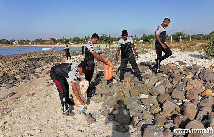 11 Vijayabahu Infantry Regiment (11 VIR) troops of the 521 Infantry Brigade under the 52 Infantry Division of the Security Force HQ - Jaffna (SFHQ-J), organized a beach cleaning project along the Akkarai coastal belt on Sunday...