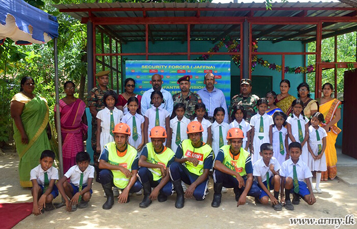 Sponsorship provided by a philanthropist in the area enabled 11 Sri Lanka Light Infantry (11 SLLI) troops of the 513 Infantry Brigade of the 51 Infantry Division under the Security Force HQ-Jaffna to add a new classroom...