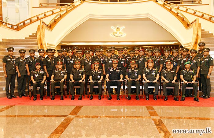Student Officers in the Senior Command Course (SCC) - 08 of the Army War College (AWC) at Buttala as part of their familiarization module called at the Army Headquarters at Sri Jayawardenepura on Monday (10 July) in order to receive...