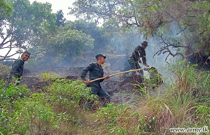 8 GW Troops Extinguish Bush-Fire in Godakumbura Forest Area