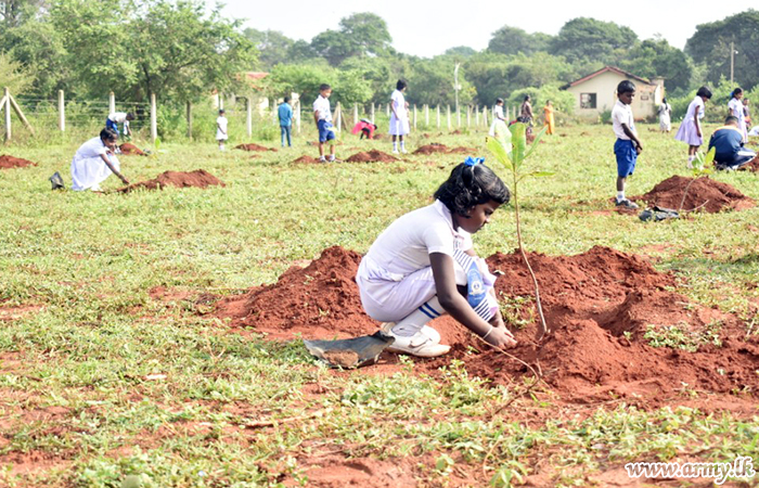 The 651 Infantry Brigade troops with the objective of generating a source of income for development of the Kaneshapuram Primary School at Wellankulam planted 100 hybrid cashew saplings in the school...