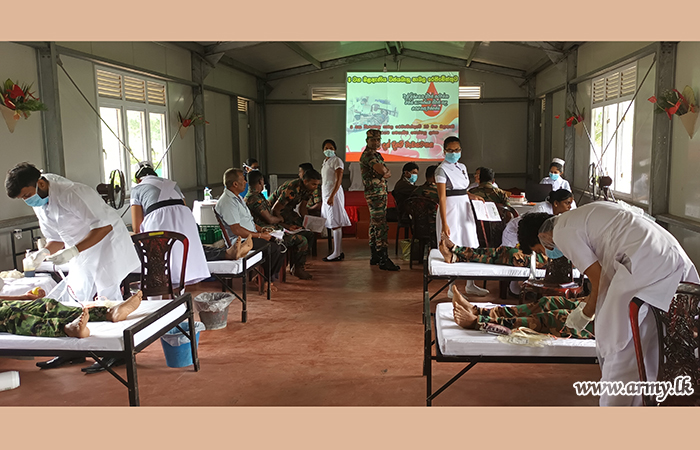 8 Vijayabahu Infantry Regiment (8 VIR) troops on account of its 29th Anniversary on Saturday (3) in collaboration with the Medical Staff at the National Blood Bank - Mannar Branch gave away blood at the camp premises...