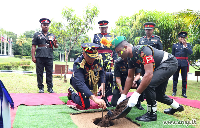 To mark the Sri Lanka Army’s 75th Anniversary, an island-wide tree planting programme was launched under the guidance of Lieutenant General Vikum Liyanage RWP RSP ndu, Commander of the Army. The initiative, under the supervision of the Directorate of Agriculture and Livestock, commenced on 10 October 2024 with the Army Chief planting a “Red Sandalwood” sapling at Army Headquarters.