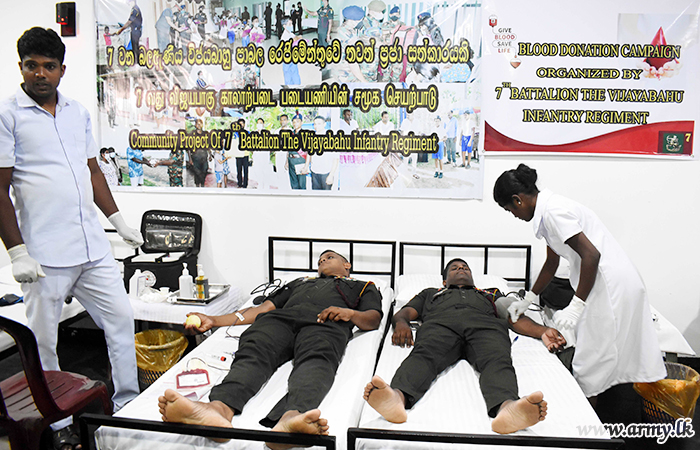 100 Army personnel of the 7 Vijayabahu Infantry Regiment (VIR) at Chavakachcheri, Jaffna on account of their unit’s 30th anniversary voluntarily donated blood to Jaffna patients, joined a donation of dry rations...