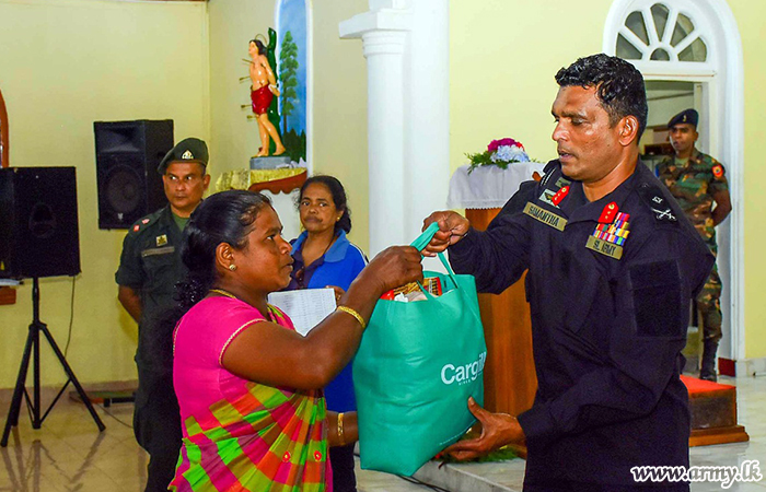 The Army troops of the Security Forces Headquarters - Central with sponsorship given by a Colombo - based philanthropist distributed dry ration packs among 75 needy families, resident in the close by area, adjacent to the Kahagalla Tea Estate Company...
