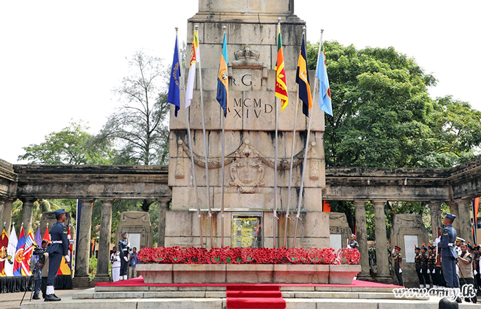 Remembrance Day Commemorated with Poppy Flowers Laid at Cenotaph