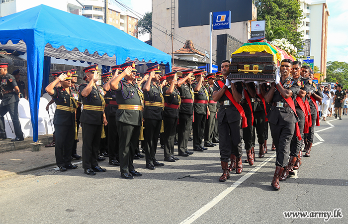 The military funeral of the late Colonel D.M.B.P.B. Dissanayaka RSP USP of the Sri Lanka Artillery, who served the country for more than 28 years, took place on Wednesday (09 Oct) afternoon at the Borella General Cemetery.
