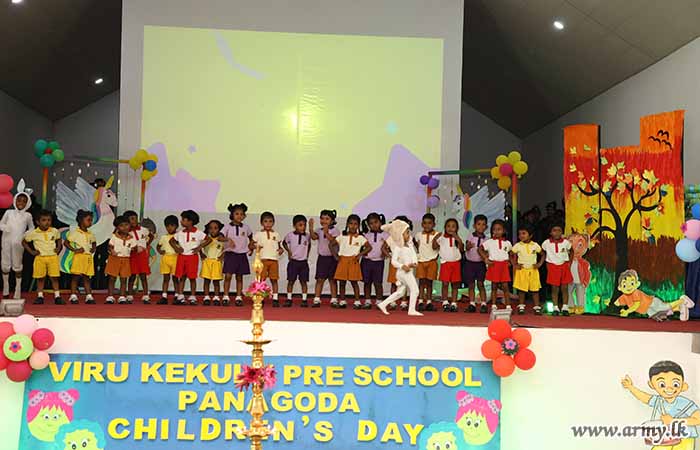 In celebration of World Children’s Day under the theme “Let’s Protect Children – Treat Them Equally,” a special event was held for children at Viru Kekulu Pre School, Panagoda, at the Sri Lanka Light Infantry Auditorium on 1 October 2024. The event was conducted under the guidance of Mrs. Surangi Amarapala, the Lady in Charge of the preschool, and Major General A.H.L.G. Amarapala RWP RSP ndc psc, the Commander of the Security Forces (West).
