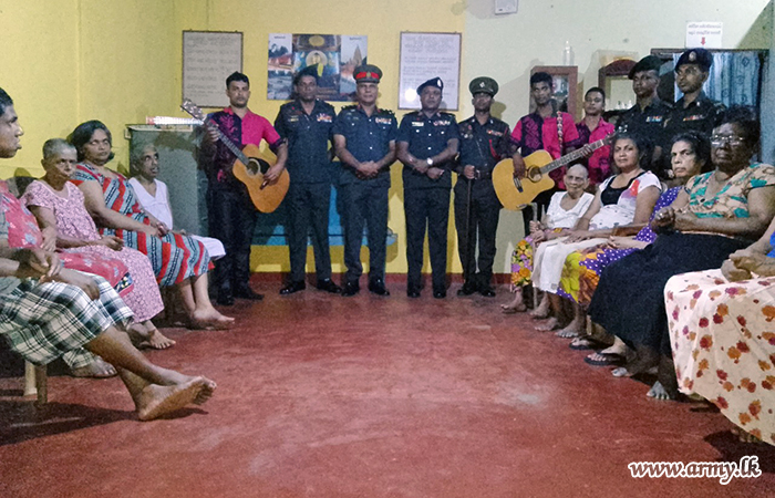 Troops of the 582 Brigade under the 58 Division repeating their annual alms-giving project at Ilimba, Horana Swarnapali Elders’ Home offered a hearty meal plus entertainment to the adults on October 1...