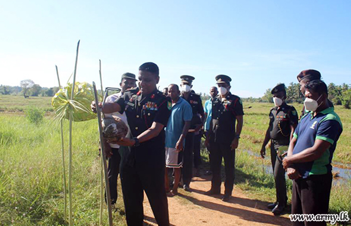 Troops of the 5 (V) Mechanized Infantry Regiment of the 661 Brigade under the 66 Division of the Security Force HQ - Mullaittivu laid the foundation stone for construction of a new house for a selected needy family...