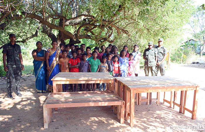 With the intention of uplifting the educational standards of the needy students in the Vallipunam area in Mullaittivu, 681 Brigade troops using locally available raw materials, made six desk tables and six benches...