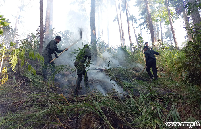 Troops of the 3 Sri Lanka National Guard (SLNG) of the 122 Brigade of 12 Division under command to the Security Force Headquarters - Central, swiftly rushed to extinguish a fast-spreading wildfire in the general forest area...