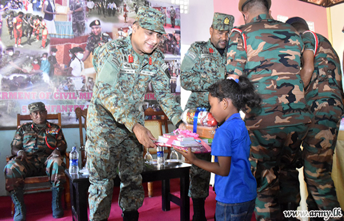 24 needy children learning in the Kolondupilawu Angeikatta Preschool were the recipients of school accessories and essentials, thanks to the arrangements made by 572 Brigade troops of the 57 Division...