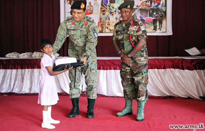 Troops of the 9 Vijayabhau Infantry Regiment under command to the 573 Brigade HQ of the 57 Division of the Security Forces - Mullaittivu recently organized the distribution of school shoes, uniforms and bags among...
