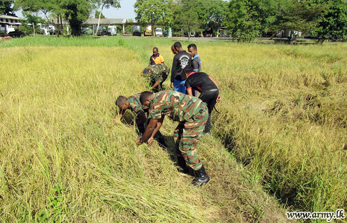 The Army Training School (ATS) at Maduru Oya on Saturday (17) had its first harvesting ceremony with the participation of the ATS Commandant, Brigadier Senaka Kasthurimudali and ATS troops.