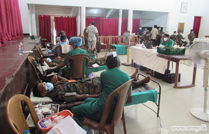 104 Army personnel including Officers of the 582 Brigade of the 58 Division in Horana at the request of the Blood Bank at Ragama along with civilians donated blood for the benefit of patients during an arrangement that took place on Sunday (28).