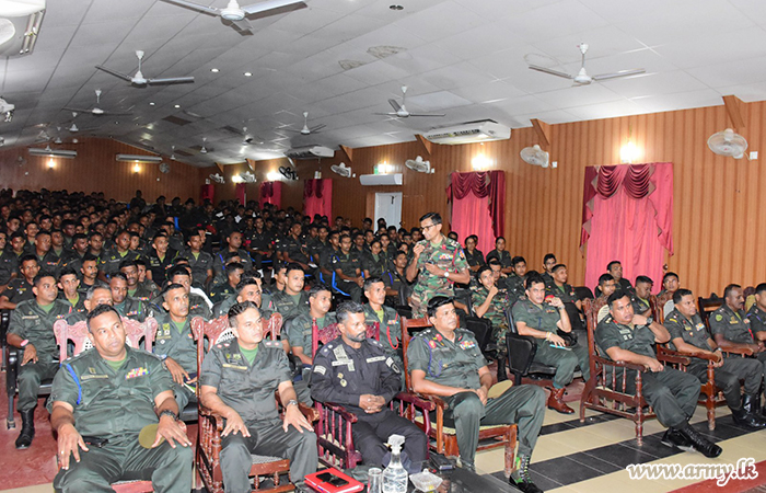 The 1 Corps Headquarters at Kilinochchi with the objective of enlightening all Army personnel about the dangers of narcotics and the importance of prevention from drugs organized a lecture for Officers and Other Ranks on Thursday (25) at the 1 Corps HQ premises.