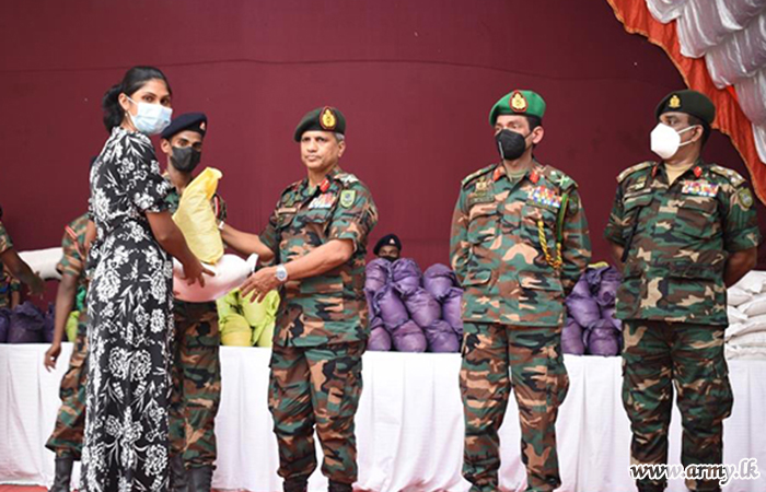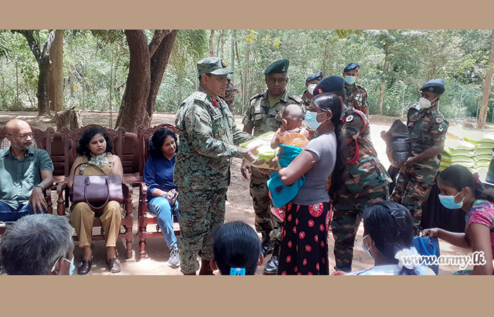 Troops of the 532 Brigade under command to the 53 Division and 1 Corps assisted the distribution of dry ration packs among 35 needy families in the general areas of Mawanagama, Henanigal, Bambarawana and Pussalawinna in Sandunpura...