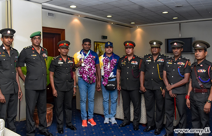 The Sri Lanka Army Para Athlete, Corporal H.G Palitha Bandara who brought honour and admiration by winning the Silver medal in the para discus throw event in the Commonwealth Games tournament, returned to the island on Monday (8) to be received warmly...