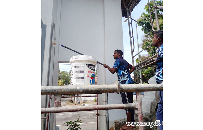 Troops of the 613 Brigade of the 61 Division at the request of the Basnayeka Nilame at Devinuwara Sri Vishnu Upulwan Dewalaya completely repainted the main entrance (Wahalkada) on account of the annual Esela Festival.