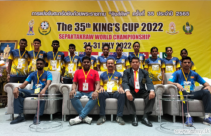 Army footballers representing Sri Lanka in the 35th World Sepak Takraw Championship in Thailand during 24 July -01 August 2022 did well and beat players from Switzerland, Brazil, Pakistan and Iraq. 04 male players and 05 female players...