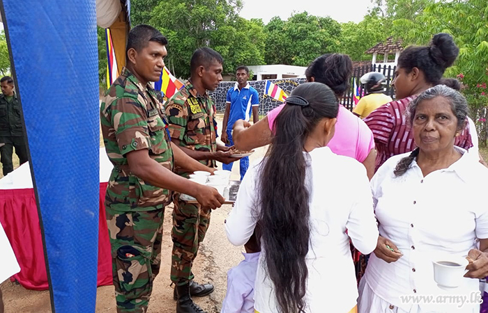 11 Sri Lanka National Guard troops of the 241 Brigade under the 24 Division of the Security Force HQ-East on account of Poson Poya day provided free refreshments to the devotees and joined a 'Bodhi Pooja' programme...