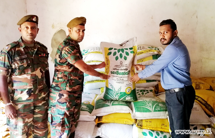 10 (v) troops of the Corps of Engineer Services (CES) on Monday (6) handed over 8000 kg of Army-processed organic fertilizer to the Company Warehouse of Ceylon...