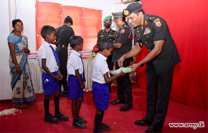 Troops of the Security Force Headquarters - Central coordinated the donation of a large stock of school accessories among 106 children of under-privileged low income group families, resident in Gonamatawa...