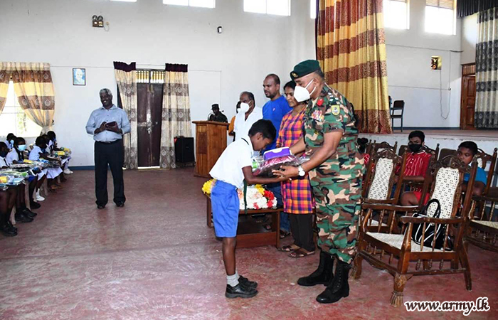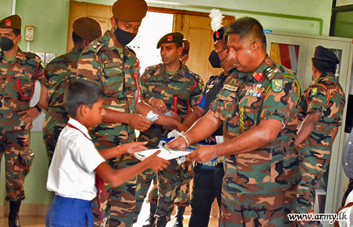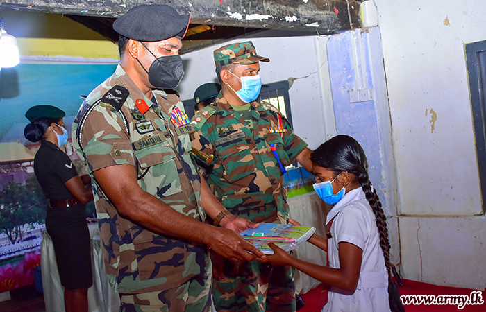 Major General Samantha Silva, Commander, Security Forces - Central as the Chief Guest gave away a large stock of school accessories and stationery to 115 students learning at Makulella Vidyalaya...