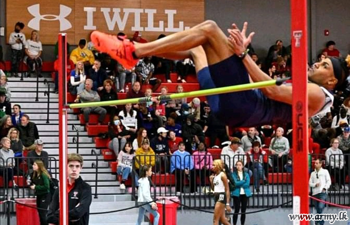 Private H. T. U. T Perera of the Sri Lanka Army Service Corps (SLASC) participating in the Indoor High Jump event at the Indoor Lone Star Conference (LSC) competition at Texas Tech Sports Performance Center...