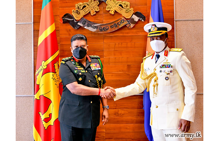 Commodore Anthony Victor Kujoh, Defence Advisor at High Commission of Nigeria in Sri Lanka this afternoon (2) extended courtesies to the Chief of Defence Staff and Commander of the Army, General Shavendra Silva during a visit he made to the Army HQ....