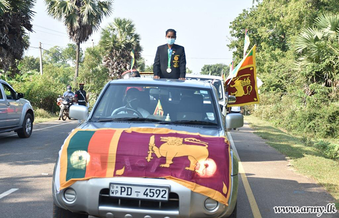 The 59 Division HQ under the SFHQ-MLT on Tuesday (1) welcomed and felicitated the Karipaddamurrippu Government's Tamil School-produced Gold Medalist, Ms Ganesha Indikadevi who won a Gold in the Kick...