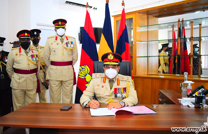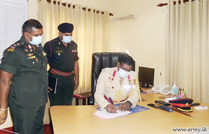 Brigadier E.A.P Ediriweera of Sri Lanka Light Infantry (SLLI) recently assumed office as the Director in the Directorate of Recruiting at his office in Kohuwala. The newly-appointed Director left his signature for an official document....