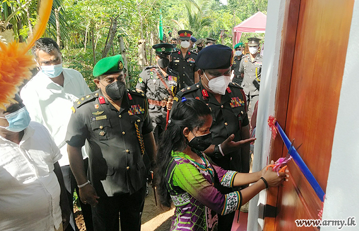 Troops of the 8 Sri Lanka Sinha Regiment (8 SLSR) of the 611 Brigade of the 61 Division under the Security Forces - West, together with the sponsorship, provided by ‘Sirasa’ TV constructed one more new house for a disabled family in Arandara, Kegalle...
