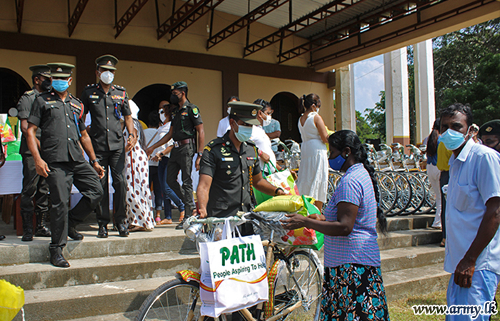 An initiative of the Security Force HQ-Wanni and the 21 Division enabled the donation of 20 bicycles and 20 dry rations packets among underprivileged families, resident in the Cheddikulam Divisional Secretariat area...