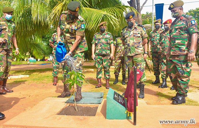 The Engineer Services Trade School (ESTS) in Galayaya in order to support the green concept, 'Thuru Mithuru Nawa Ratak' of the Commander of the Army on Tuesday (30) planted 250 saplings of Kumbuk, Mee, and Coconuts inside ESTS compound...