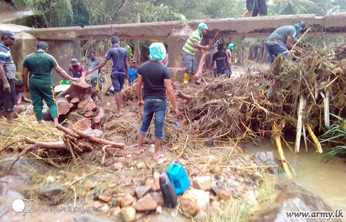 Troops of the 2 Sri Lanka Rifle Corps (SLRC) under command to the 112 Brigade of the Security Force Headquarters - Central volunteered to assist civilians, affected due to landslides, floods and emergencies with onset of torrential rains in the general areas...