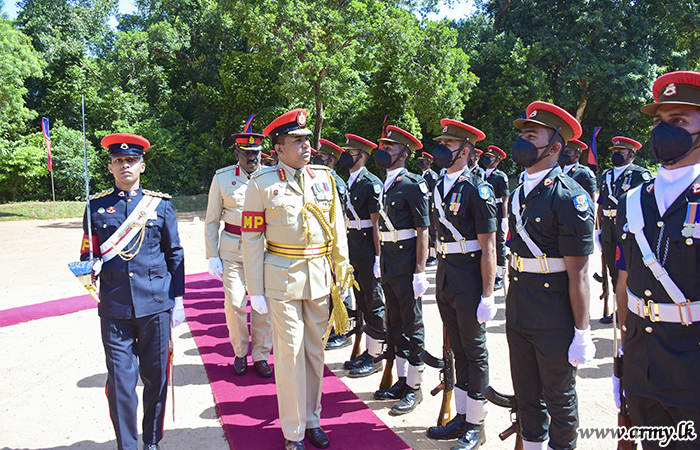 Troops of the Forward Maintenance Area in Mullaittivu (FMA-MLT) upon arrival of their newly-promoted Commander, FMA-MLT, Major General Anil Illangakoon to the HQ after receipt of new insignia from the Army Chief at the Army HQ presented honours...