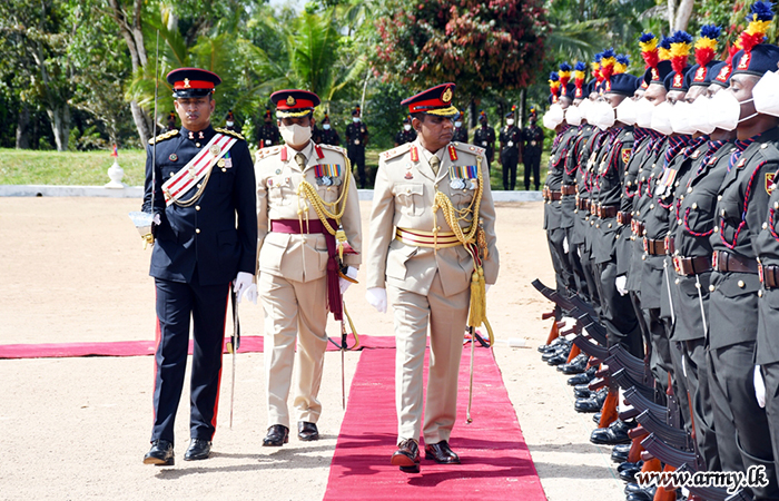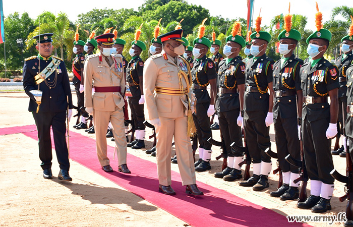 Troops of the 52 Division in Mirisuvil upon arrival of their newly-promoted General Officer Commanding Major General Chandana Wickramasinghe after receipt of new insignia from the Army Chief at the HQ premises presented honours and greeted him....