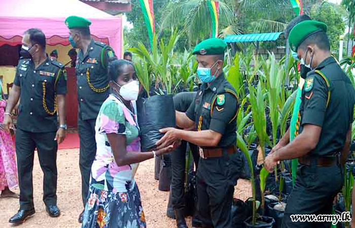 In line with the Army Commander’s ‘Thuru Mithuru-Nawa Ratak’, 5 (V) Gajaba Regiment troops distributed 500 coconut saplings among 250 farming families on 13th October in commemoration of the 72nd Army Anniversary day.