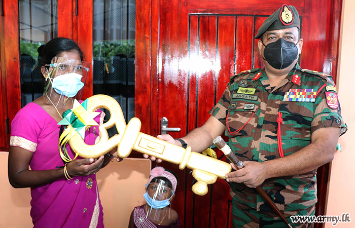 Troops of the Security Force Headquarters - Jaffna (SFHQ-J) once again extended their technical, engineering and manpower support to build a new house to another underprivileged family in Imayanan, Udupiddy after their plight...