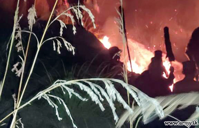 Troops of the 121 Brigade quickly responded to an SOS appeal and controlled a sudden bush fire that erupted in general forest area Daragoda Kanda in Horombuwa Forest Reserve in Monaragala District after the public alerted the troops on the fast spreading...