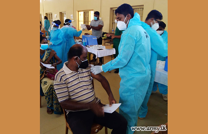 In order to accelerate the national vaccination drive, a vaccination programme to inoculate the second dose was launched for civilians over the age of 30 in Kilinochchi by 57 Division troops in coordination with the Regional Director of Health Services - Kilinochchi.