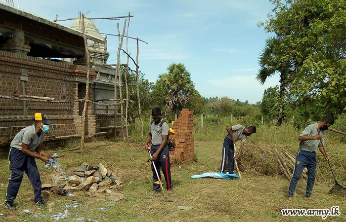 Troops Clean Kovil Premises at Rajathurainagar