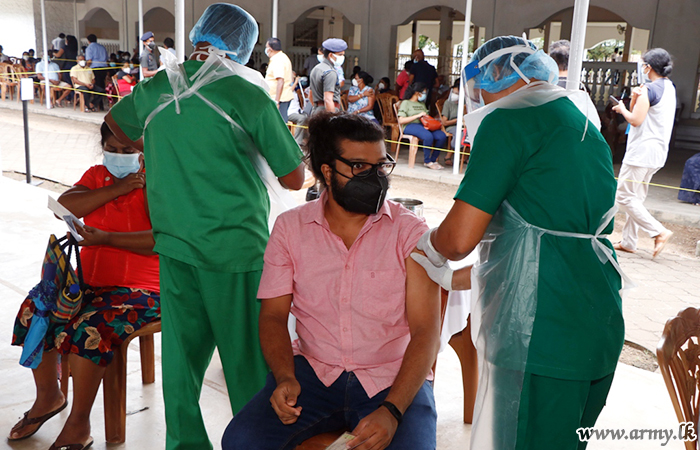 The national vaccination, being conducted by Army medical personnel at Panagoda Bodhi Rajaramaya (Army Temple) was closely supervised by Major General Sujeewa Senarathyapa, Commander, Security Forces-West on Monday (9)...