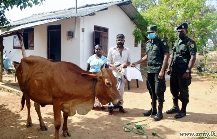Troops of the 22 Vijayabahu Regiment (VIR) of the 222 Brigade under the 22 Division of the Security Force HQ- East donated two cattle to a low-income family in Trincomalee District on Saturday (07) in order to give a helping hand to improve their livelihood.