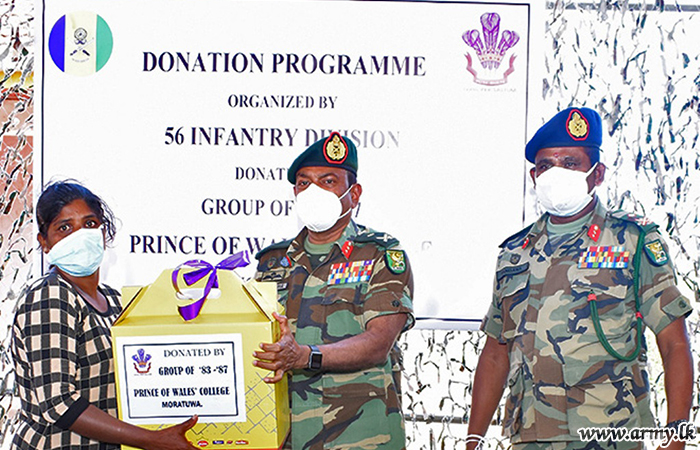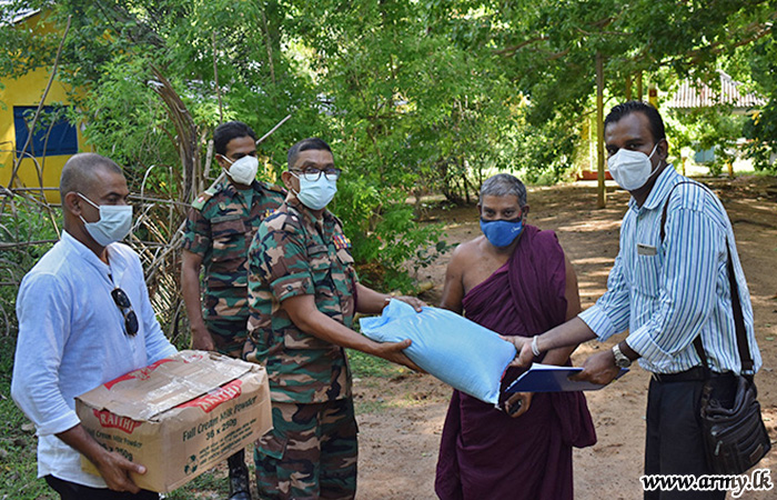 Following generosity offered by one Mr Prasad Lokubalasooriya, past pupils of Royal College, Colombo and Sri Jayawardenepura Campus, 14 Sri Lanka Light Infantry troops of the 621 Brigade donated dry ration packs, each worth about Rs 5500/= were distributed among 10 temples, situated in the 62l Brigade area in Welioya on Monday (19).