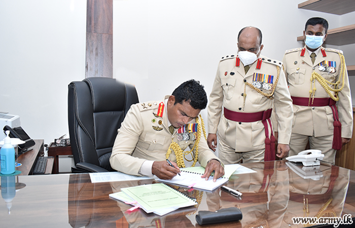 Major General Samantha Silva on Monday (19) took over duties as the 30th Quarter Master General (QMG) in the Quarter Master General Branch at the Army Headquarters. The newly-appointed QMG signed an official document to signify the acceptance of the new office amid religious observances.