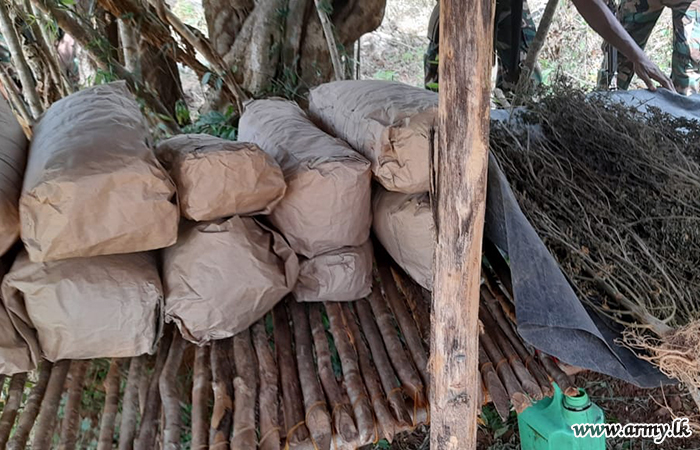 18 Gemunu Watch troops of the 121 Brigade and 12 Division under the Security Forces-Central on Thursday (8) raided a Cannabis (Ganja) cultivation in the general area of Kebilitta-Moneragala areas and destroyed the cultivation.