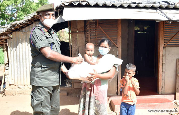 Major General Manjula Karunarathne, General Officer Commanding (GOC) in 64 Division under the Security Force HQ-Mullaittivu distributed dry ration packs among 50 needy families in Oddusuddan area on Thursday (24) after an Ireland-based Sri Lankan...